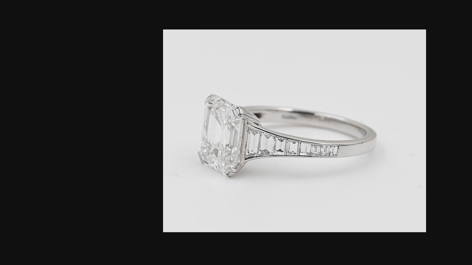 A Sophia D. Mali ring featuring an emerald cut diamond on our classic Mali band with graduated tapered baguettes set in platinum.